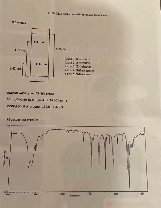 Solved CHEM 2125 Reduction of Fluorenone Data Sheet Re