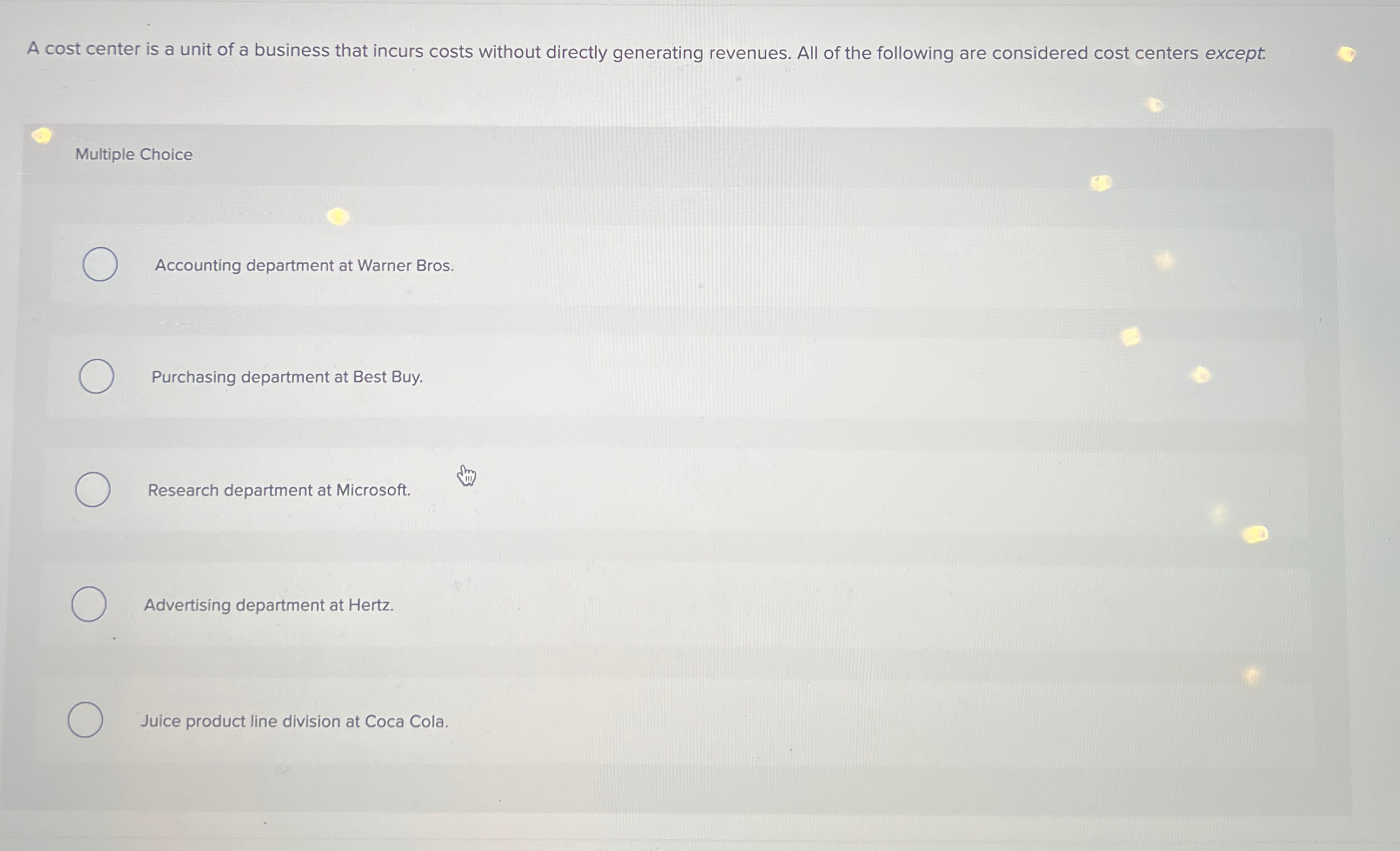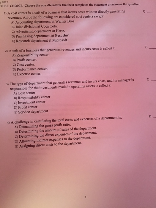Solved 1. A cost center is a unit of a business that incurs