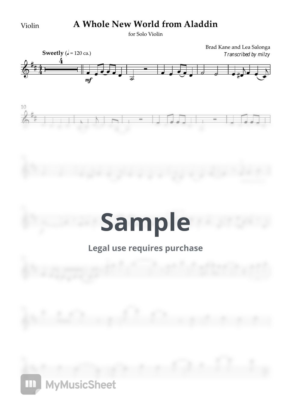 Download and print a whole new world (from aladdin) sheet music for violin solo by alan menken & tim rice from sheet music direct. Once you download your digital sheet music, you can view and print it at home, school, or anywhere you want to make music, and you don’t have to. Printable sheet music arranged for violin solo. Download.