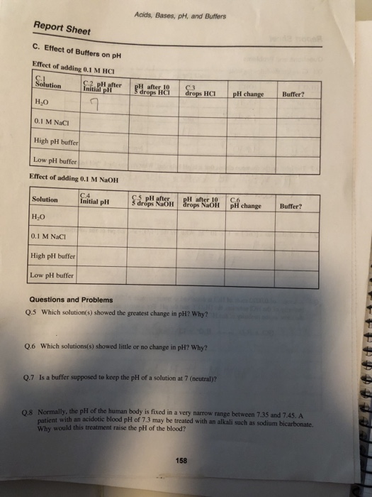Solved Acids, Bases, pH, and Buffers Report Sheet Questions
