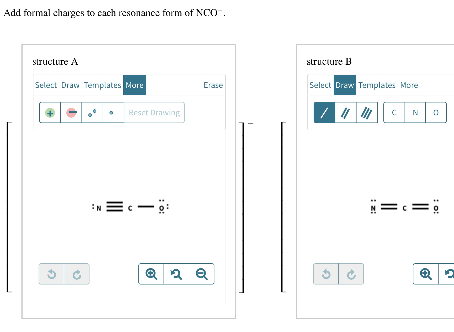 SOLVED Add formal charges to each resonance form of NCO below