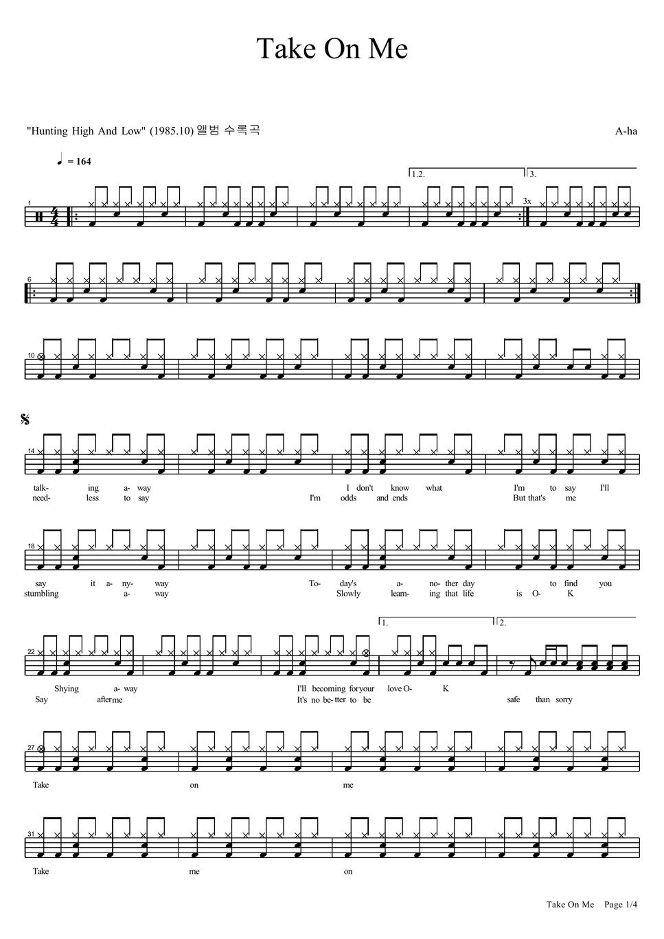Aha Take On Me Sheet Music - Free sheet music for amateur musicians and learners! Sheet music giant is a site for those who wants to access popular sheet music easily,.