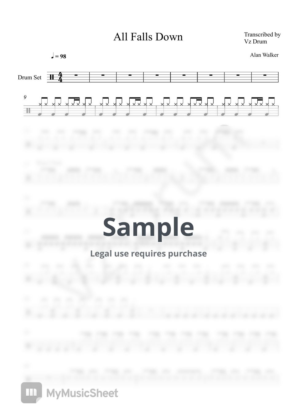Alan Walker All Falls Down Sheets by Vz Drum