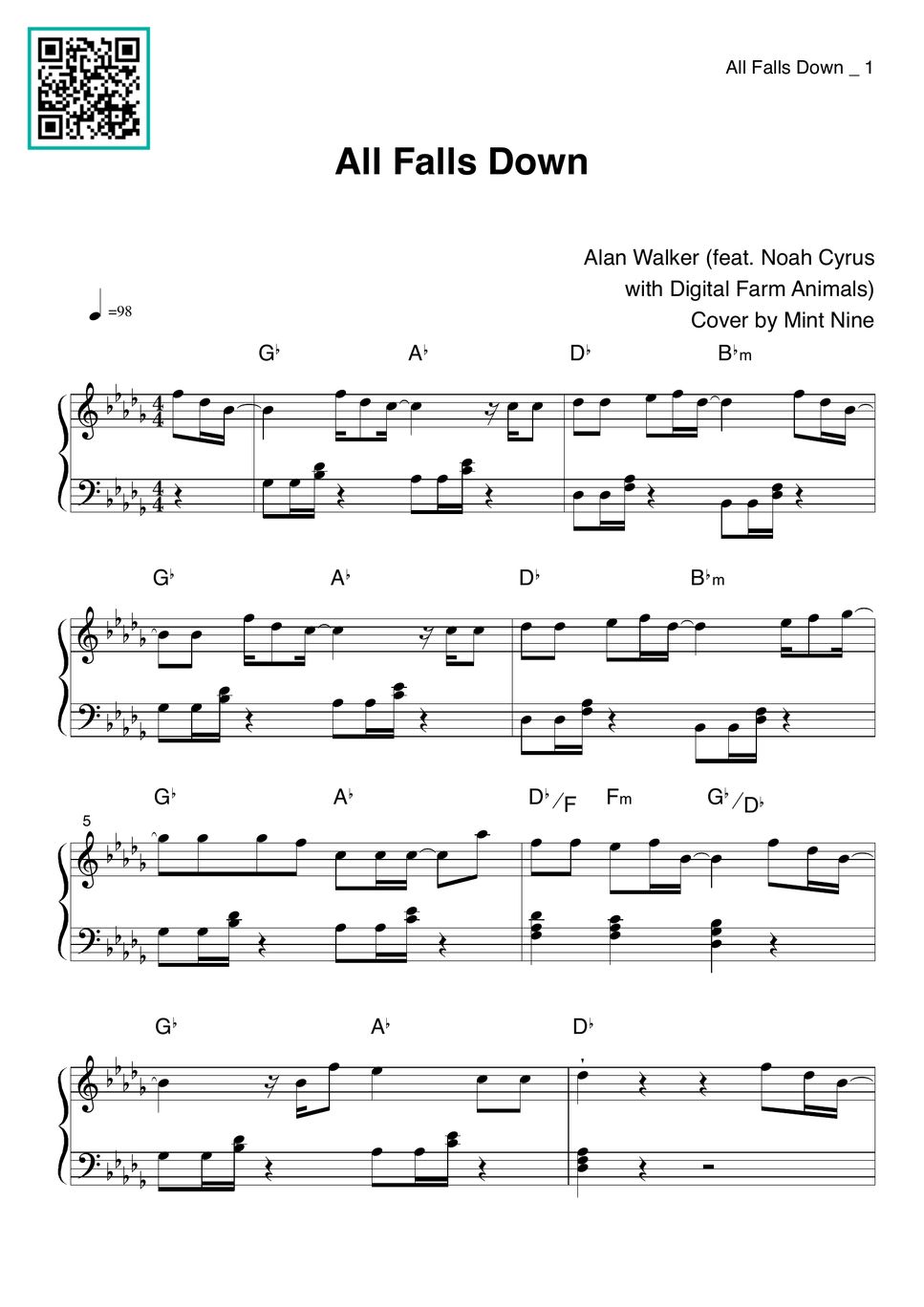 All Falls Down sheet music for Piano download free in PDF or MIDI