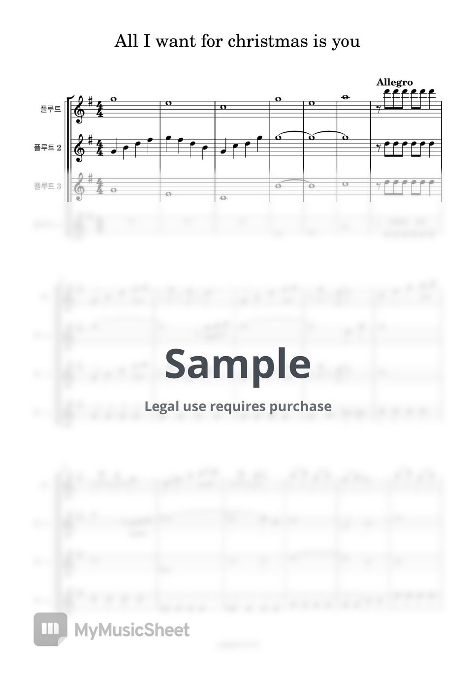 머라이어캐리 All I Want for chrismas is you (4 Flutes and MR) Sheets by 심플플루트뮤직