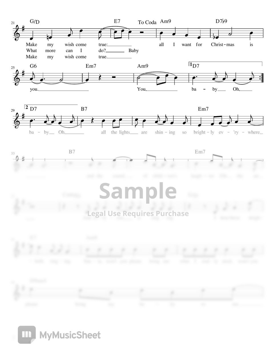 All I Want For Christmas Is You by Mariah Carey Sheet Music for Lead