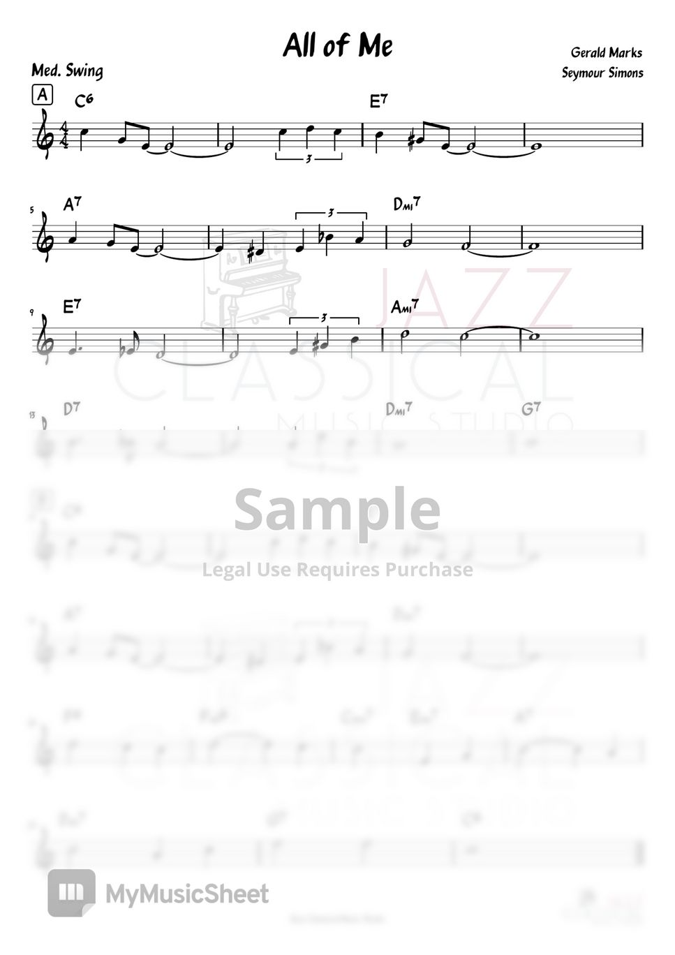 Cmaj7 e7 a7 dm7 e7 am7 d7 dm7 g7 cmaj7 e7 a7 dm7 f fm cmaj7 em7 a7 dm7 g7 c6 e 7 (fim) dm7 g7 (medium swing) a b all of me. All of g7 & 31 w me. One of the iconic tunes from the swing era, this enduring standard has been recorded by countless artists ranging from louis armstrong, count. Don't forget, if you like. Share, download and print free sheet music of all of me jazz standard for piano, guitar, flute and more with the world's largest community of. It's completely free to download and try the listed vocal sheet music, but you have to delete the files after 24 hours of trial.
