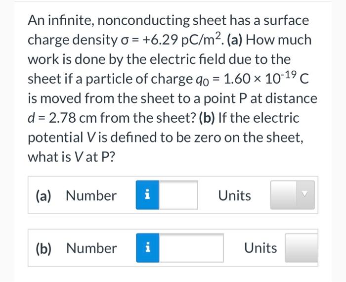 Solved An infinite nonconducting sheet has a surface charge