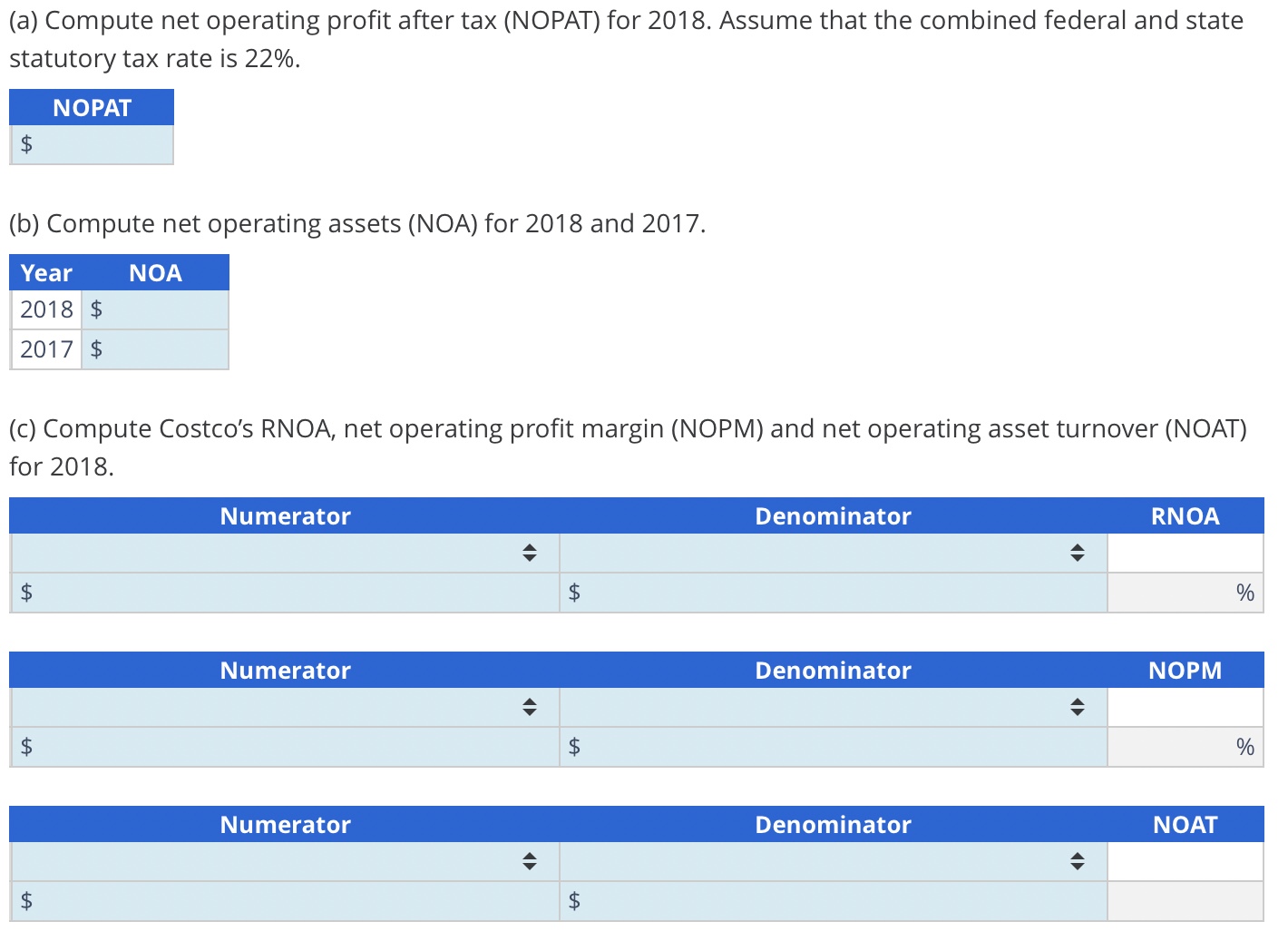 Compute and disaggregate costco's rnoa into net operating profit margin (nopm) and net operating asset turnover (noat) for 2018; Free expert solution to analysis and interpretation of profitability balance sheets and income statements for costco wholesale. In the analysis, we have compared the key financial ratios of the company with the average (median) values of those ratios.