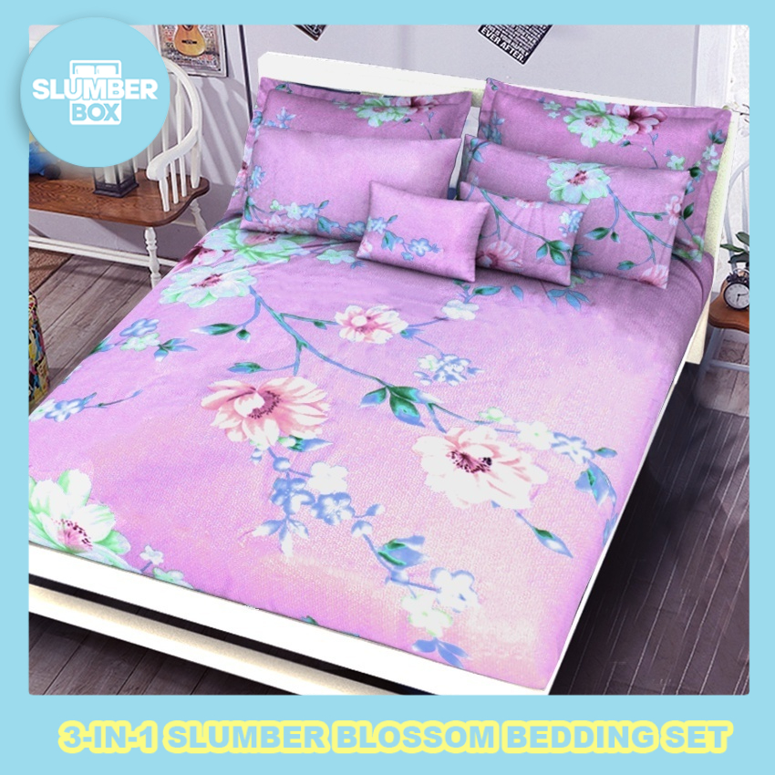 Slumber Box 3in1 Beddings Bed Sheet Home Bedsheet Set (2 Pillowcase + 1