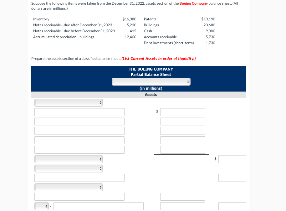 Annual balance sheet by marketwatch. View annual and quarterly balance sheets for boeing (ba) from 2009 to 2024. Change at boeing has already begun as we work together to uphold the iconic legacy of our great company. The balance sheet shows the assets, liabilities, and equity of the.