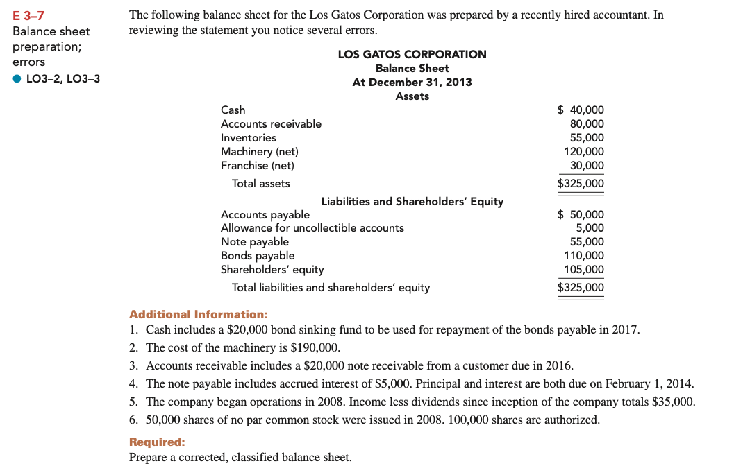 Solved E 37 Balance sheet preparation; errors LO32, LO33