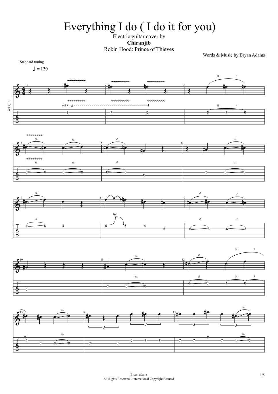 Bryan Adams Everything I do I do it for you (Guitar Cover) Sheet by