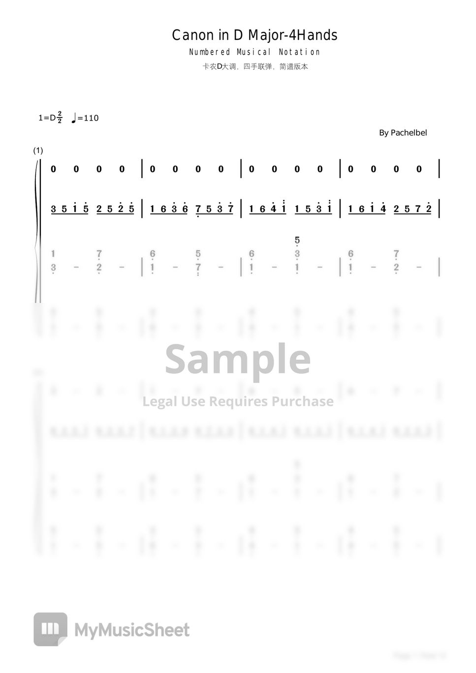 Pachelbel Canon in D Major (Canon in D Major,4Hands,Numbered Musical
