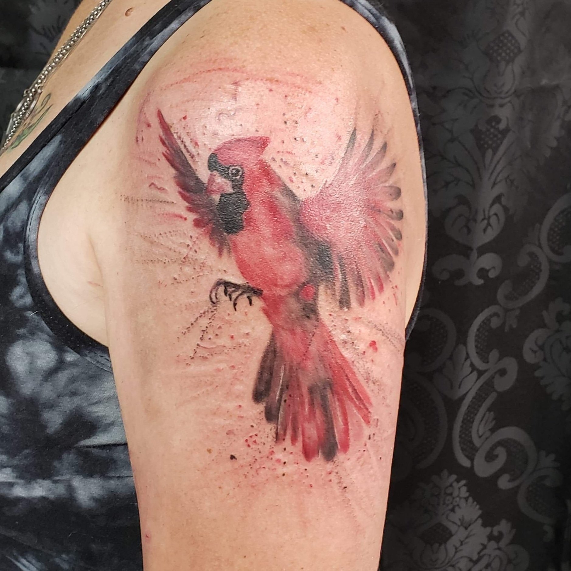 calebgibsonartredbirdcardinalwatercolorwatercolortattoos