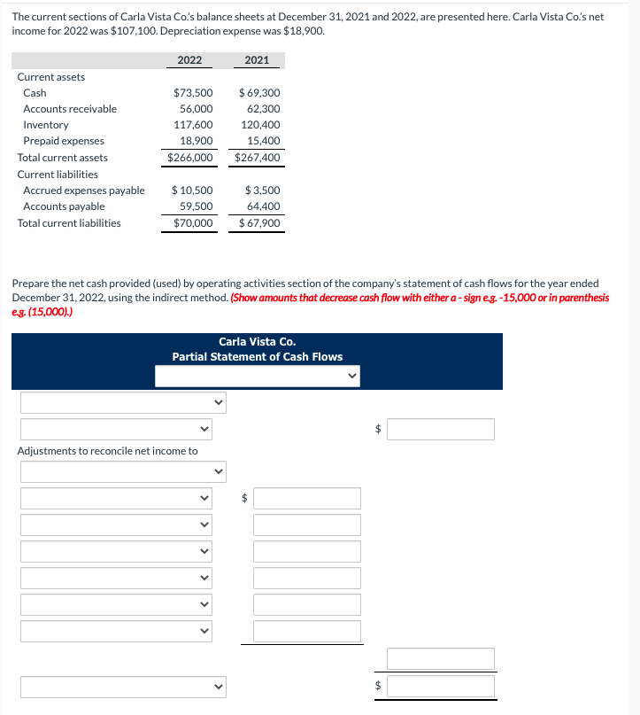 Solved Carla Vista Co.'s balance sheet at December 31, 2021,