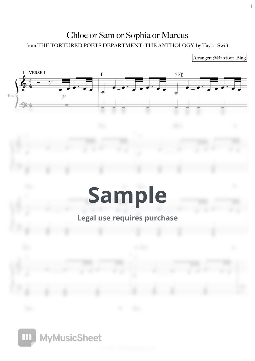 Chloe Or Sam Or Sophia Or Marcus Piano Sheet Music - Download and print chloe or sam or sophia or marcus sheet music for easy piano by taylor swift from sheet music direct. Share, download and print free sheet music of chloe or sam or sophia or marcus taylor swift for piano, guitar, flute and more with the world's. Get chloe or sam or sophia or marcus sheet music by taylor swift as a digital notation file for piano/keyboard in (transposable).