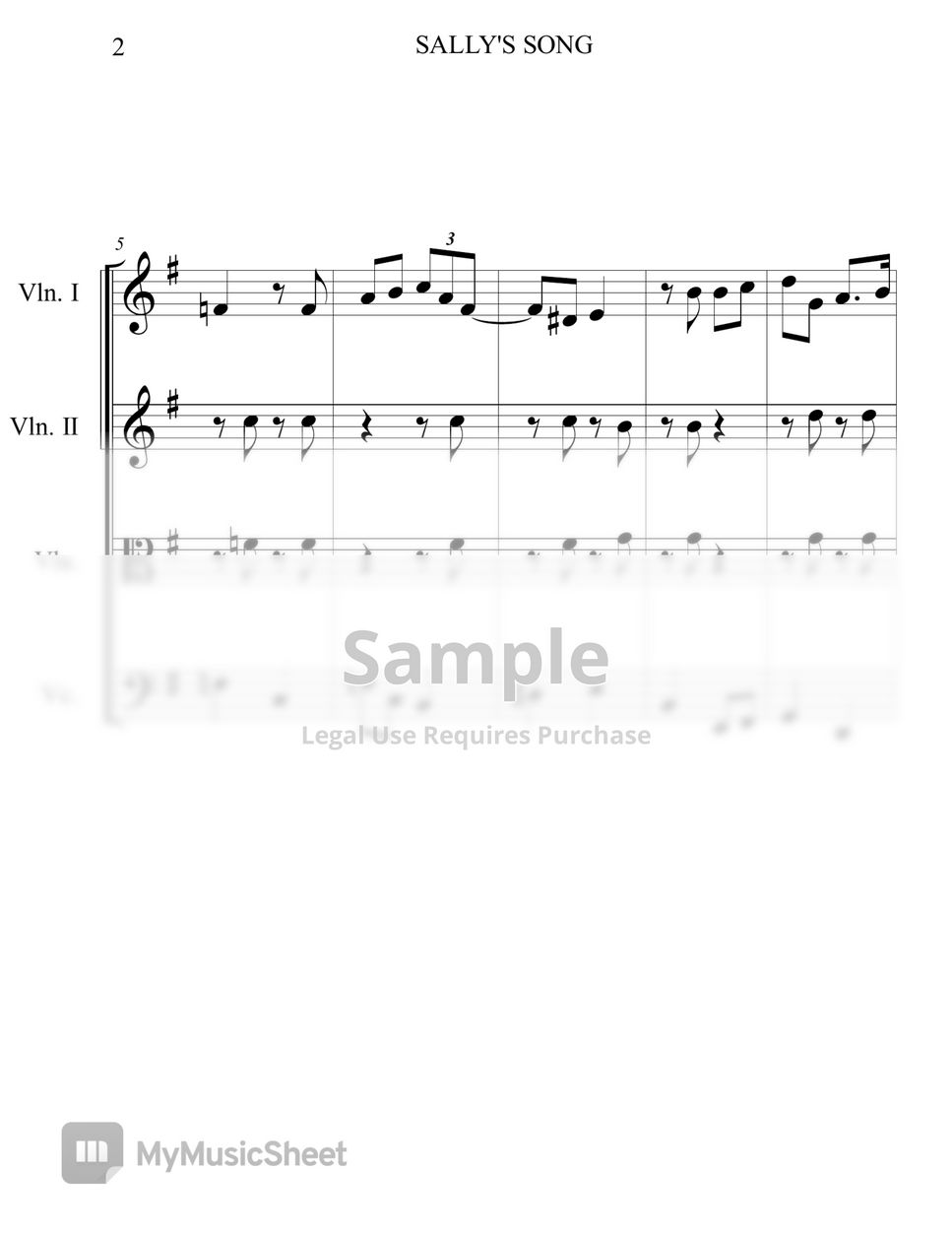 The Nightmare Before Christmas SALLY'S SONG Strings Quartet Sheets