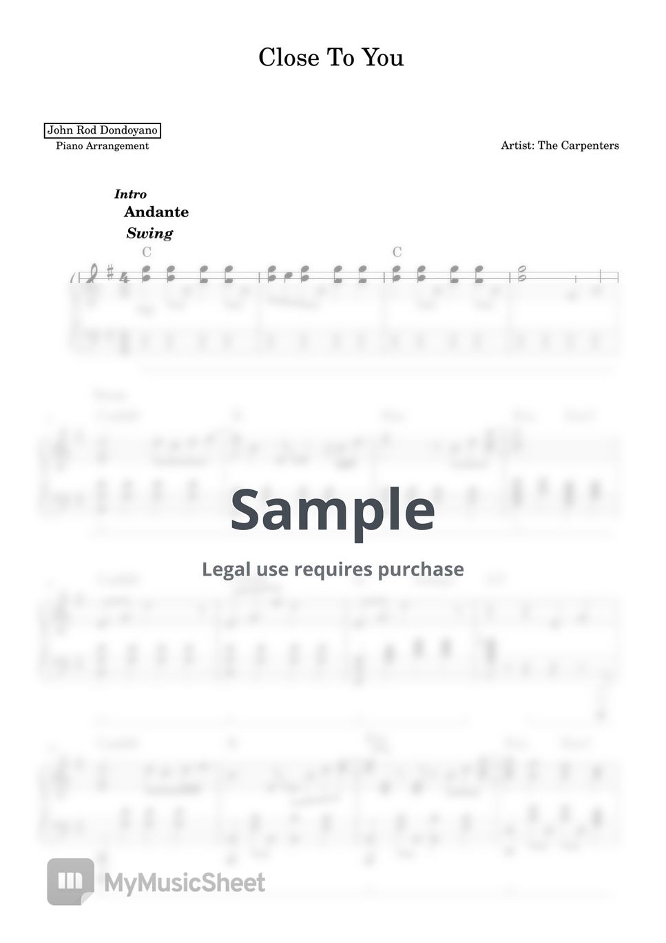 The Carpenters Close To You (PIANO SHEET) 악보 by John Rod Dondoyano