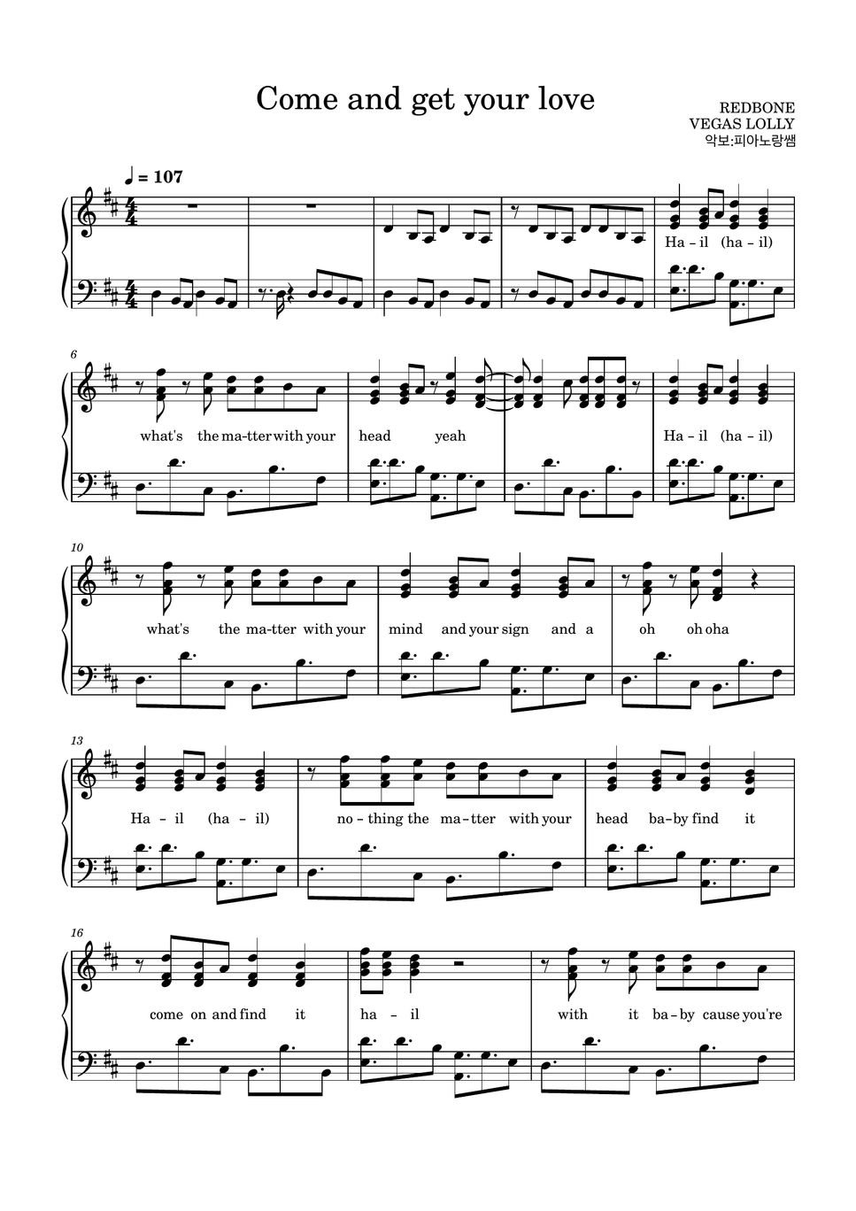 악보 > Redbone Come and get your love (원키, 짧은 악보) by 혀니피아노