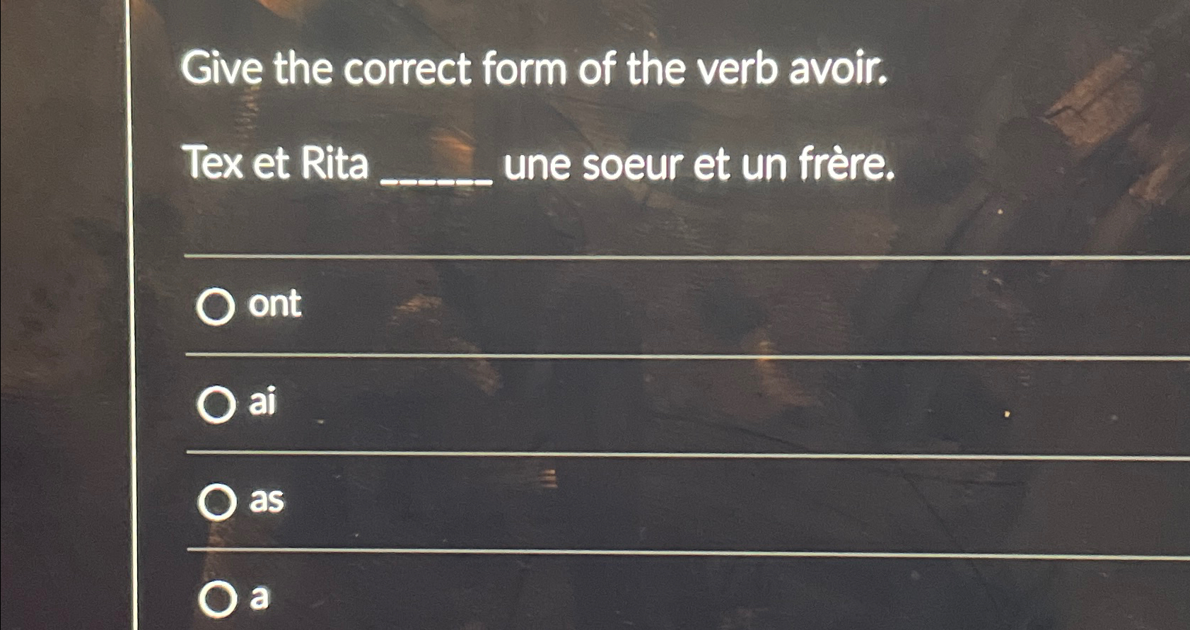 Solved Give the correct form of the verb avoir.Tex et Rita