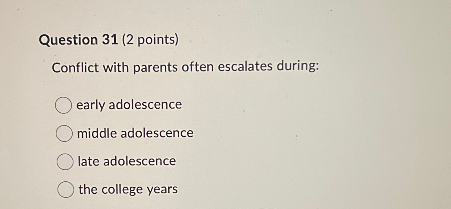 Solved Question 31 (2 points)Conflict with parents often