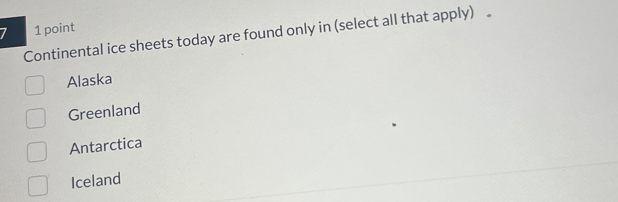 Solved Continental ice sheets today are found only in