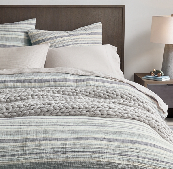 Crinkled Gauze Stripe & Washed Cotton Gauze Bedding Collection Grey/Blue