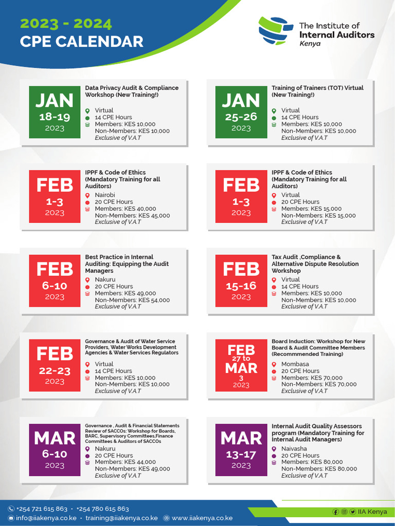 2023 2024 CPE Calendar July 18 2023 PDF Internal Audit Audit