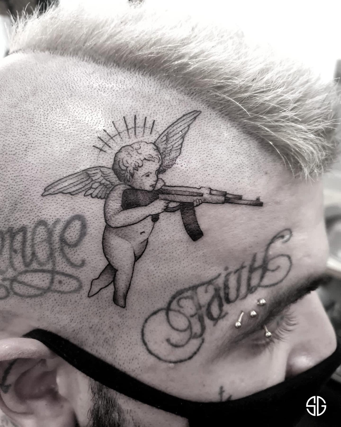 Suitable for both men and women, this design can be effortlessly incorporated onto the arms or chest areas, serving as a powerful. The traditional cupid with gun tattoo design draws inspiration from the iconic roman god of love, cupid (or eros in greek mythology). An angel with a gun tattoo embodies a blend of rebellion, power, passion, and personal defense..