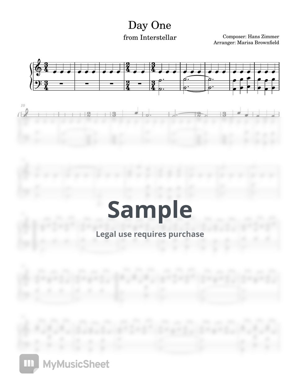 Hans Zimmer Day One (Interstellar Theme) Sheets by Marisa Brownfield