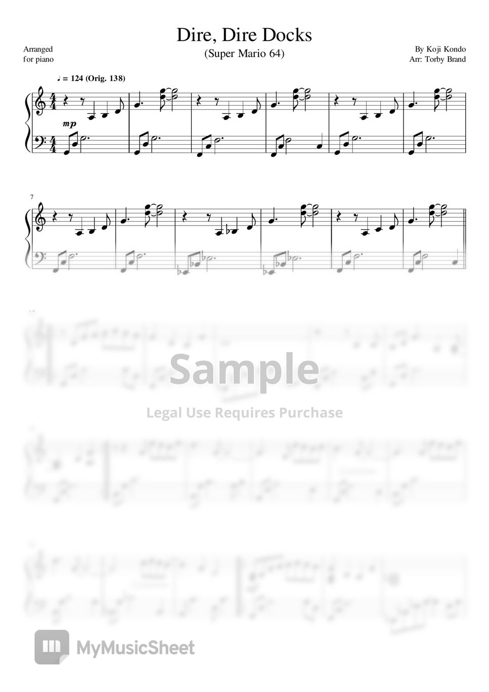 This is free piano sheet music for dire dire docks , super mario 64 provided by google.com You can share this sheet on your twitter or facebook. He is best known for scoring numerous titles in the mario and the legend of zelda series. Free and easy, high quality pdf on pianotify.