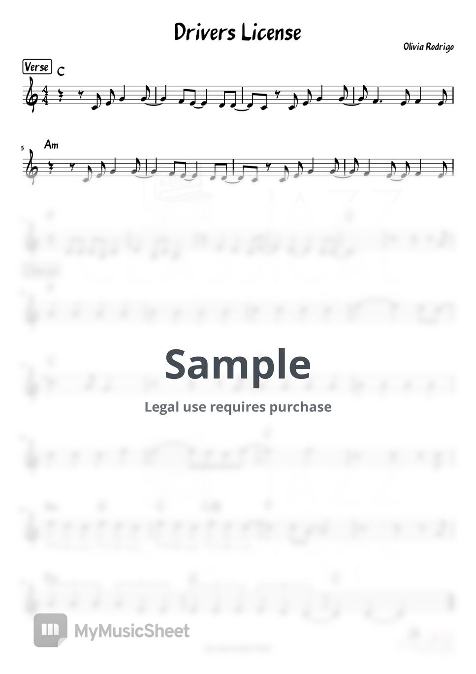 Olivia Rodrigo Drivers License Sheets by Jazz Classical Music Studio