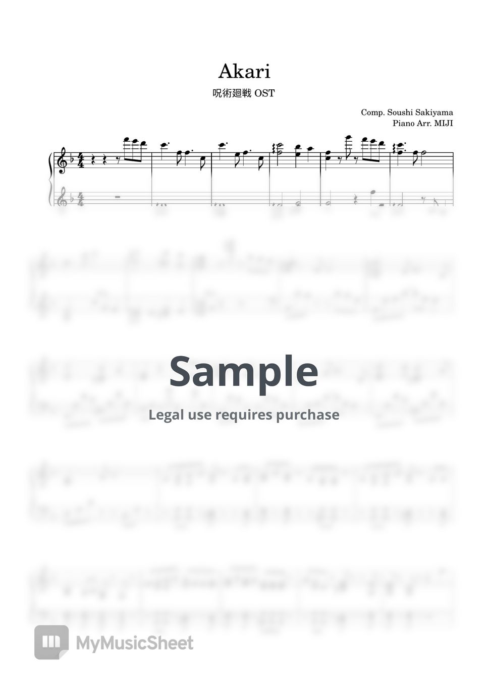 Soushi Sakiyama Akari (★★★☆☆/Jujutsu Kaisen Season 2 ED) Sheets by Dsun