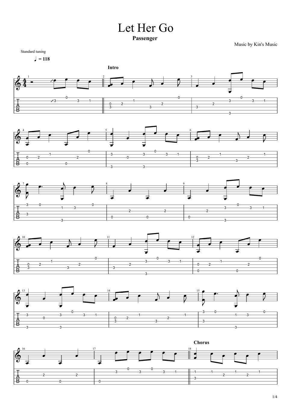 Passenger Let Her Go[Easy Guitar Fingerstyle For Beginner] Partition