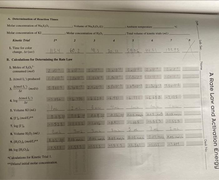 Solved Experiment 24 Report Sheet A Rate Law and Activation