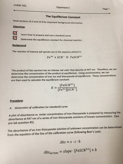 Experiment 34 An Equilibrium Constant Report Sheet - To understand the concept of equilibrium constant and its importance in chemistry. To learn how to determine the equilibrium constant (kc).