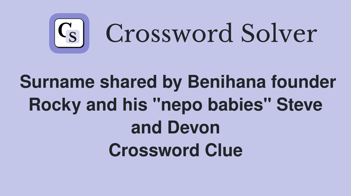 Surname shared by Benihana founder Rocky and his "nepo babies" Steve