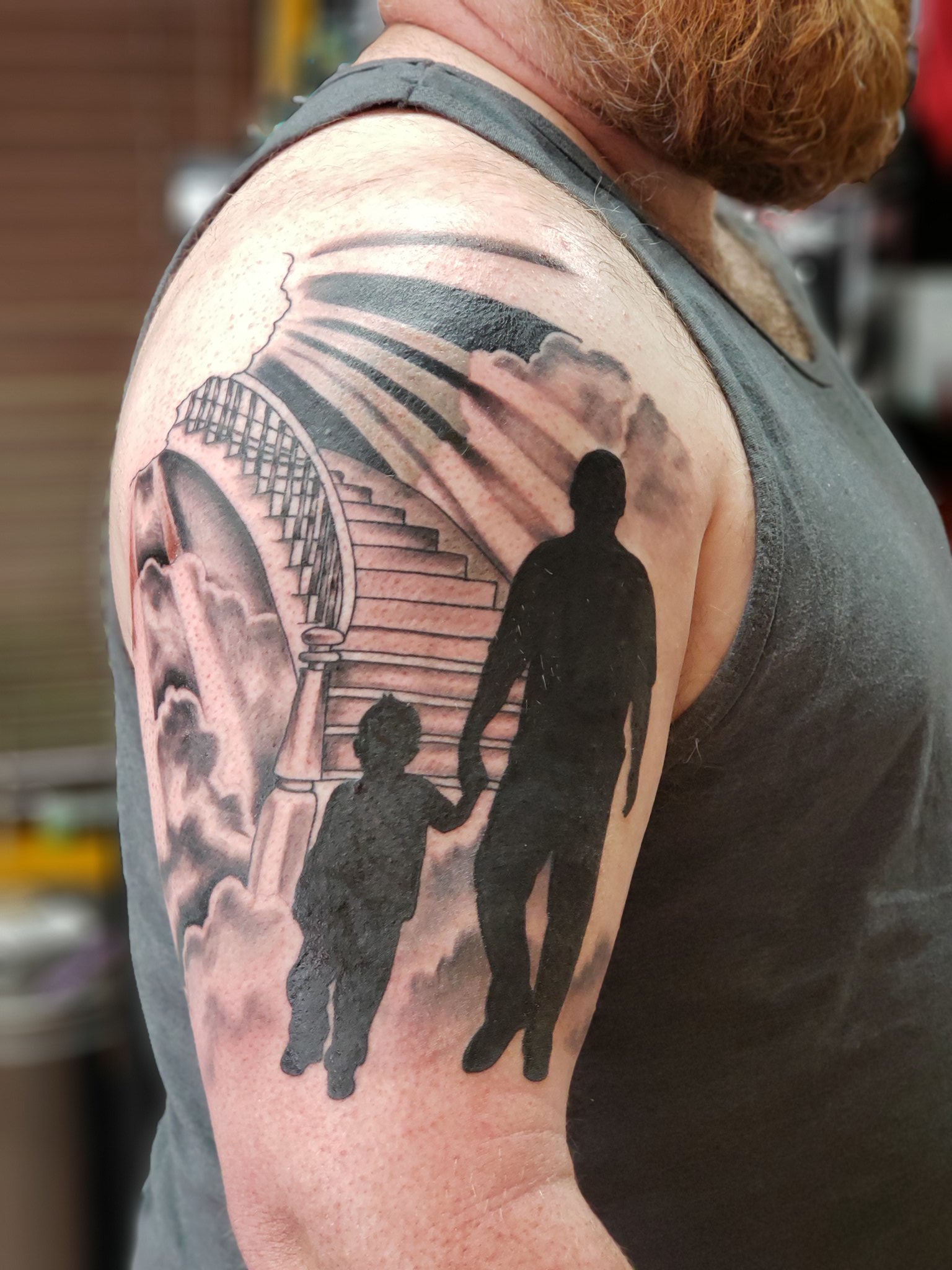 Father and daughter silhouette tattoo this touching tattoo depicts a father.