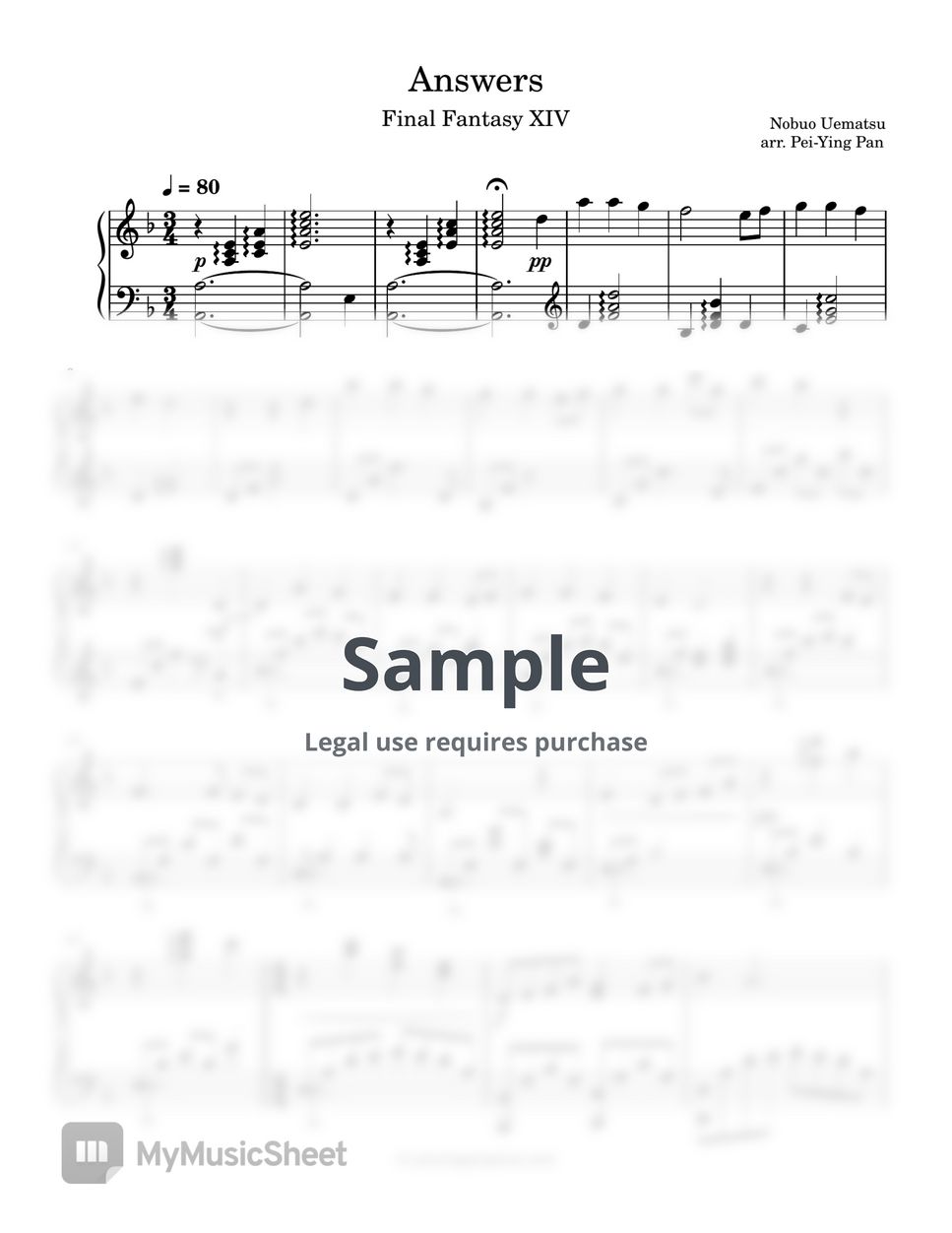 Final Fantasy XIV Answers (FF14) Sheet Music by PeiYing Pan