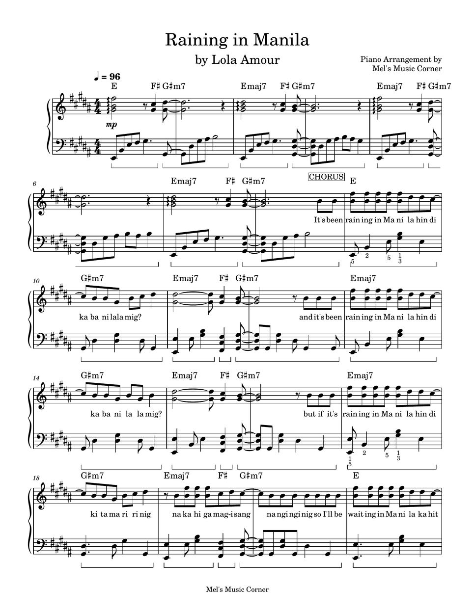 Lola Amour Raining in Manila (piano sheet music) Bản nhạc by Mel's