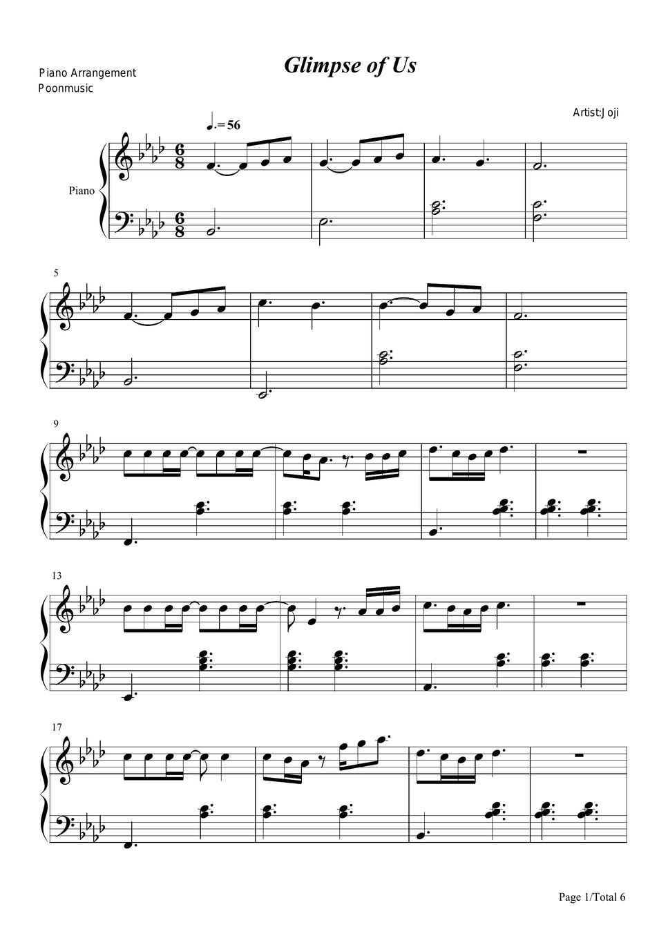 Glimpse Of Us Piano Sheet Music - We also have other versions of sheet music for this song, so you can choose what fits best for you to practice! Search and check out our. Cm7/g e♭7 a♭maj7 b♭m7 e♭7 fm7 b♭m7. And i 'causesome times i lookin her eyes and that's where i find sight in my mind.