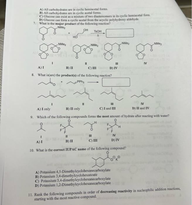 Solved A) All carbohydrates are in cyclic hemiacetal forms.