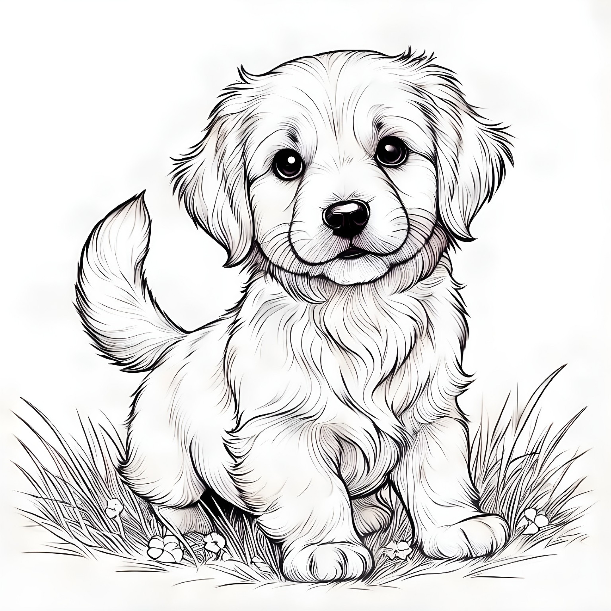Golden Retriever Adult Coloring Sheet, AI Generated Coloring Page of A