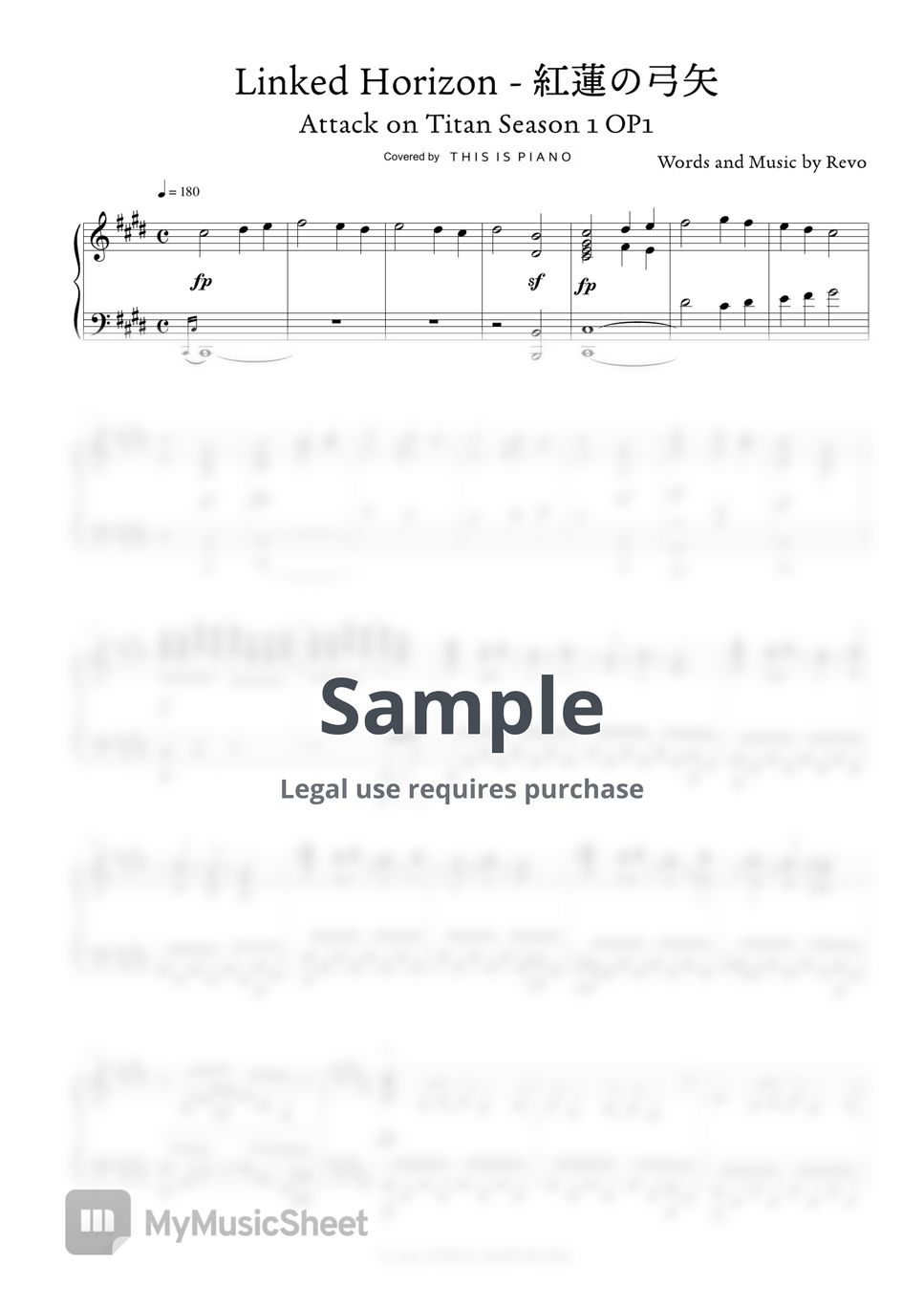Shingeki No Kyojin Music Sheets Guren No Yumiya (opening 1) Piano sheet