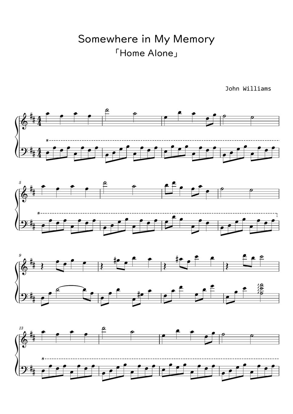 John Williams Somewhere in My Memory「Home Alone」 (Sheet Music, MIDI