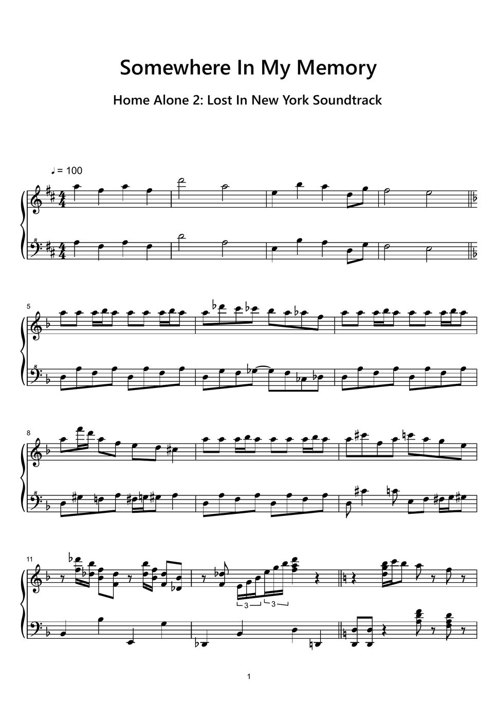 John Williams Home Alone 2 Somewhere In My Memory (Piano Sheet