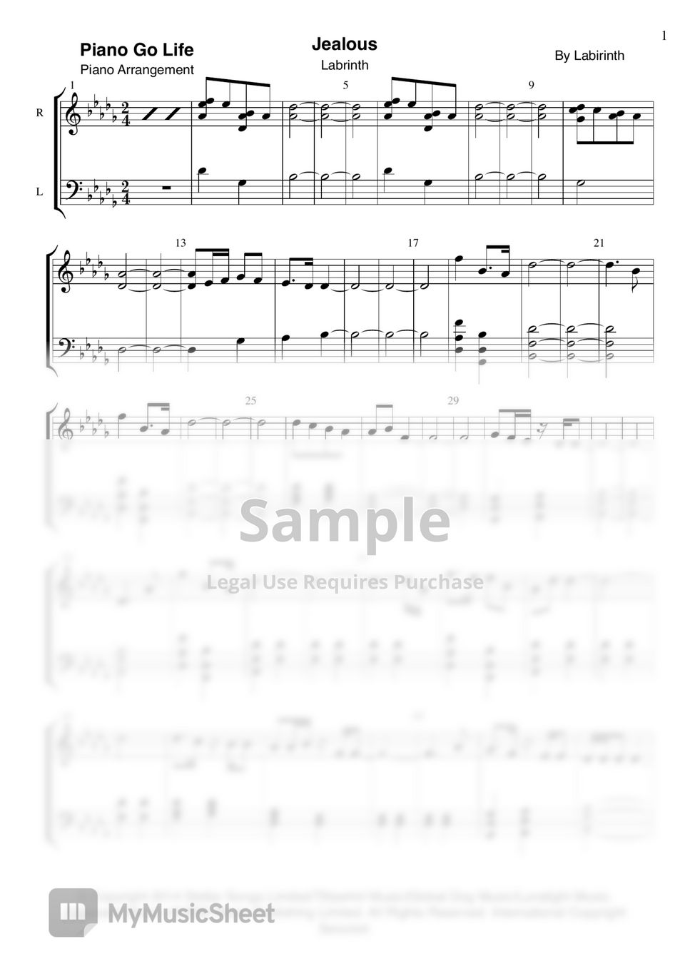 Labrinth Jealous Sheet by Piano Go Life