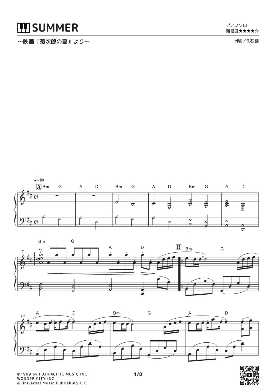 Joe Hisaishi Summer Sheet - Once you download your digital sheet music, you can view and print it at home, school, or anywhere you want to make music, and you don’t have to. Search our free piano sheet music database for more!