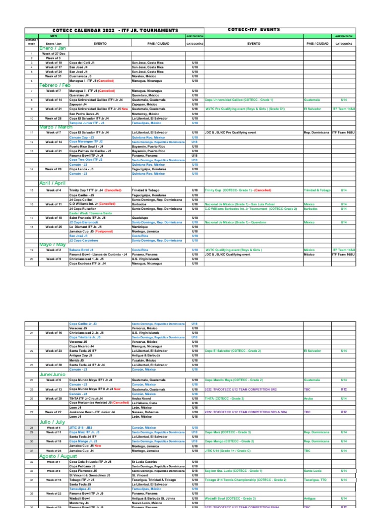 2022 Calendar ITF Junior Tournaments COTECC PDF